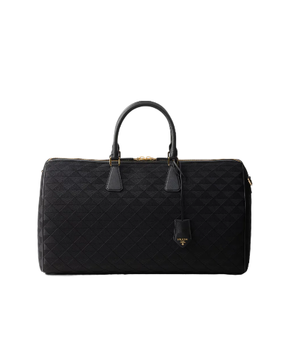 Black Embroidered Fabric Leather Duffel Bag