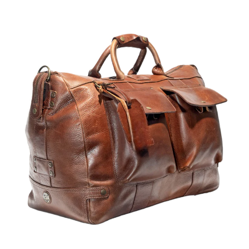 Brown Leather Travel Duffle Bag