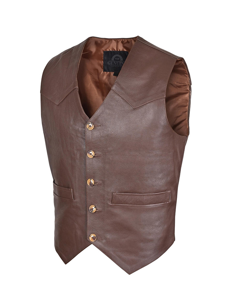 Men Brown Premium Genuine Leather Vest