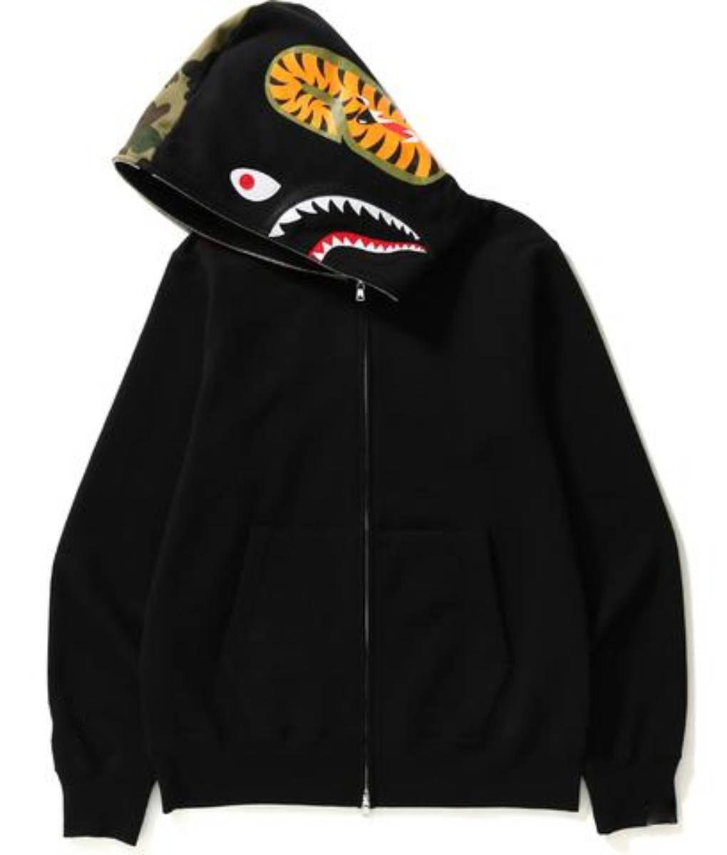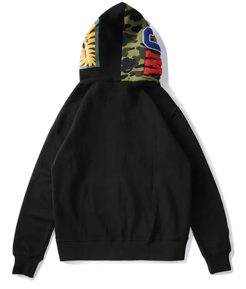 Though the color of this Men’s Bape Shark Black Hoodie is elegant black, the base makes it really versatile and showcases some of its really beautiful details.