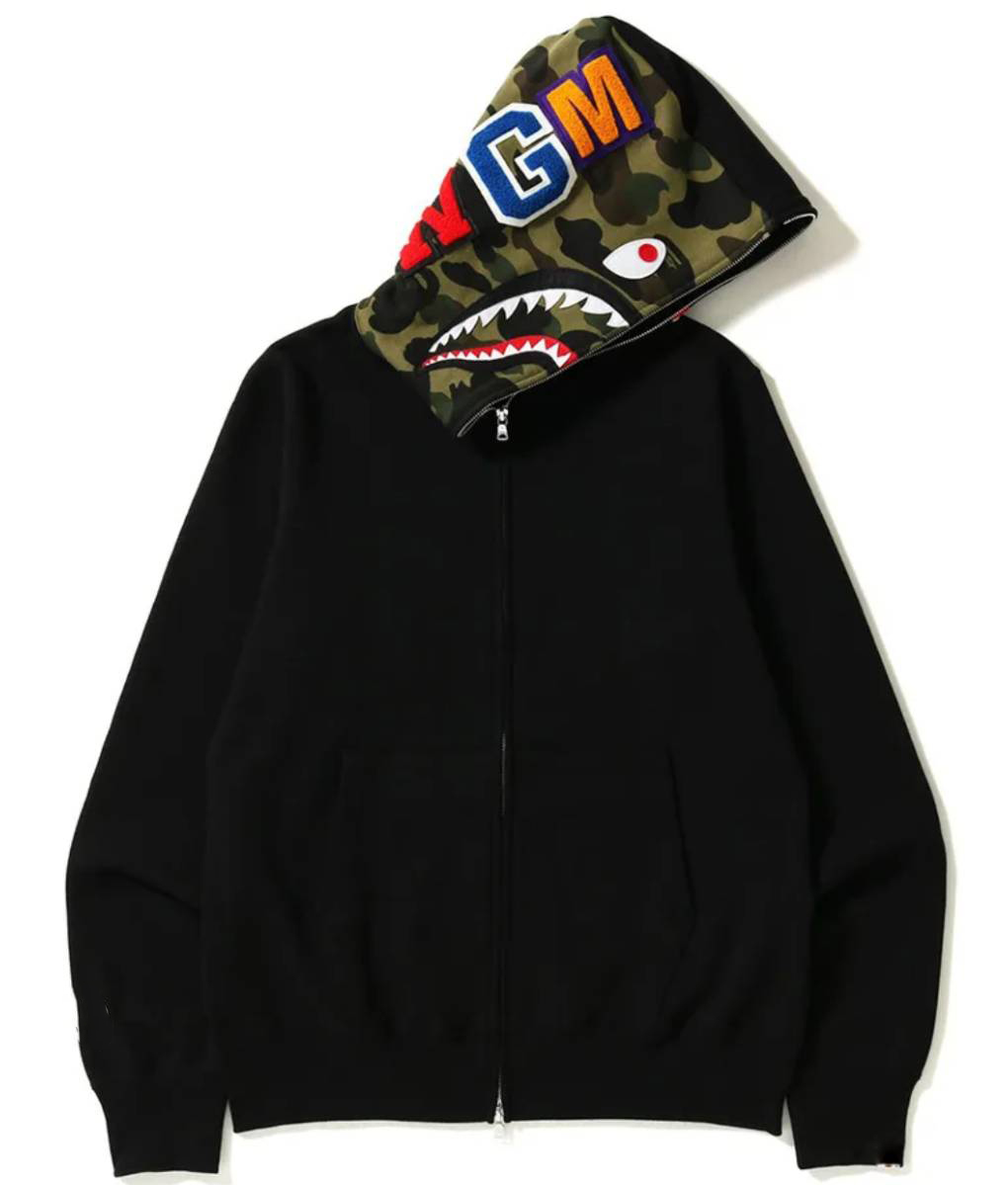 Drop some streetwear spice with the Men’s Bape Shark Black Hoodie from The Genuine Leather. If you know anything about a distinctive urban touch, then you can bet that it is easily the best for what it calls a hoodie, more like a statement.