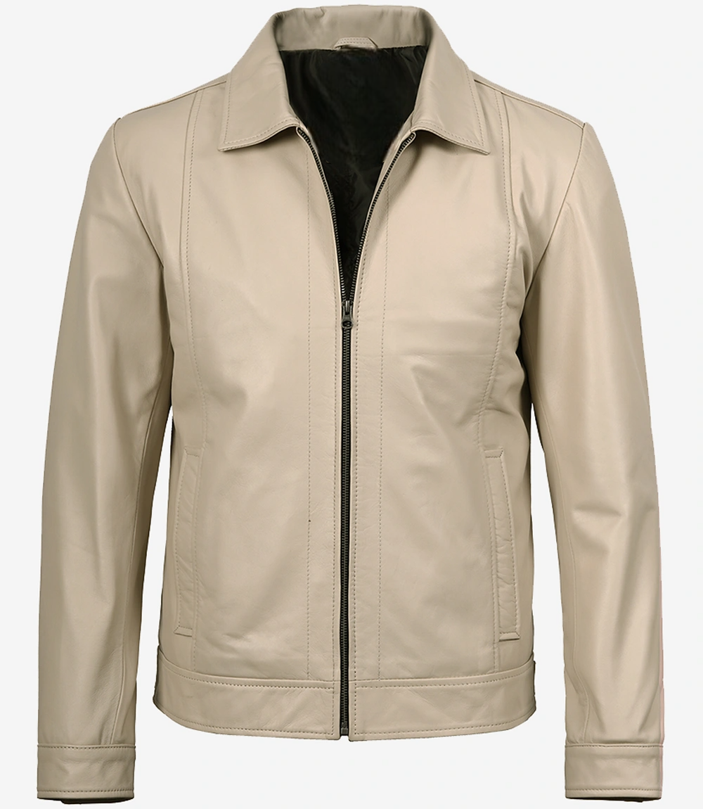 Be the first to review “Men’s Beige Real Leather Harrington Jacket”