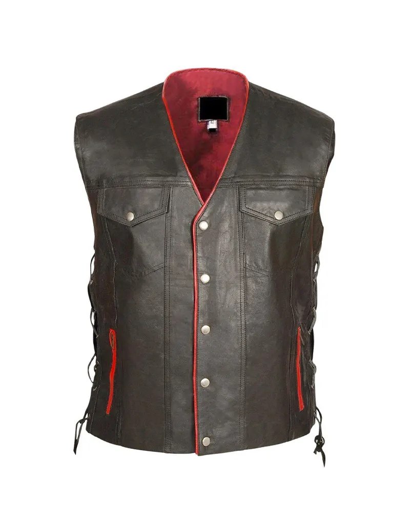 Be the first to review “Mens Black Genuine Leather Vest with Red Lining”