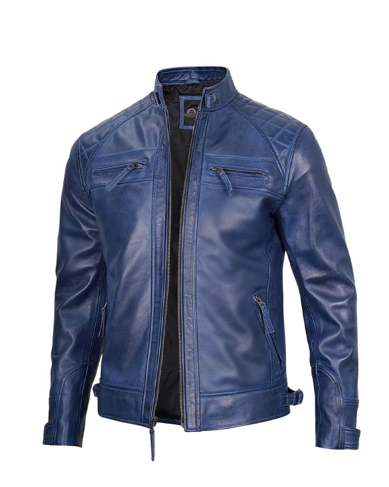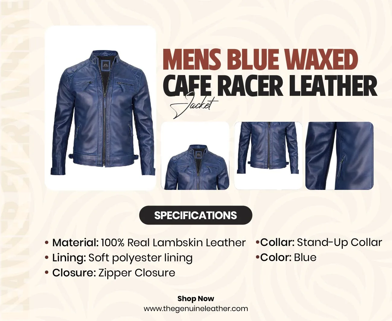 30 reviews for Mens Blue Waxed Cafe Racer Leather Jacket