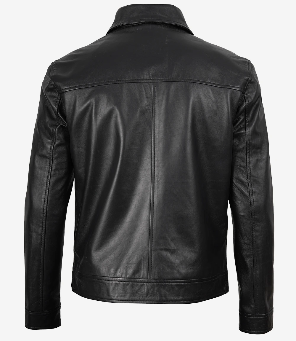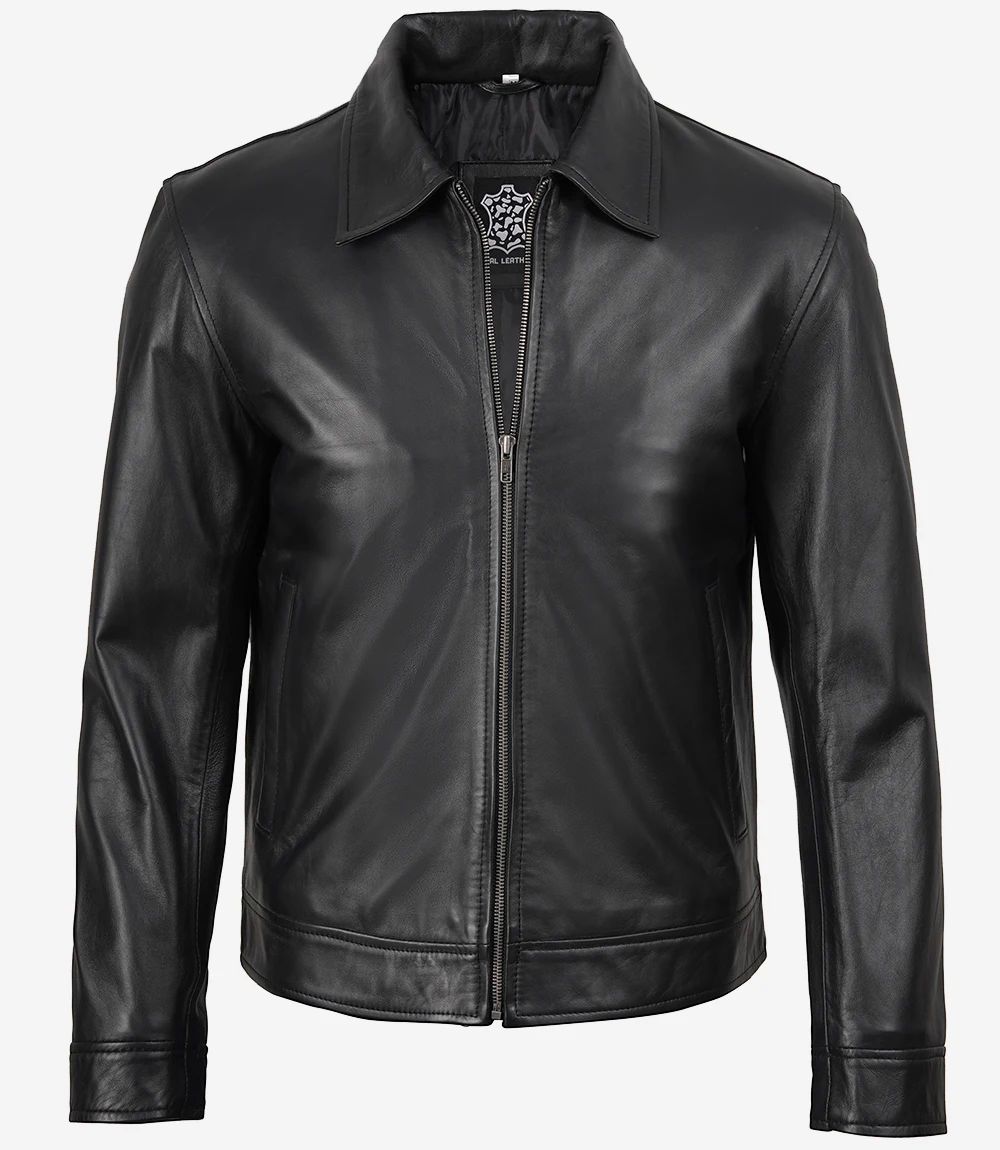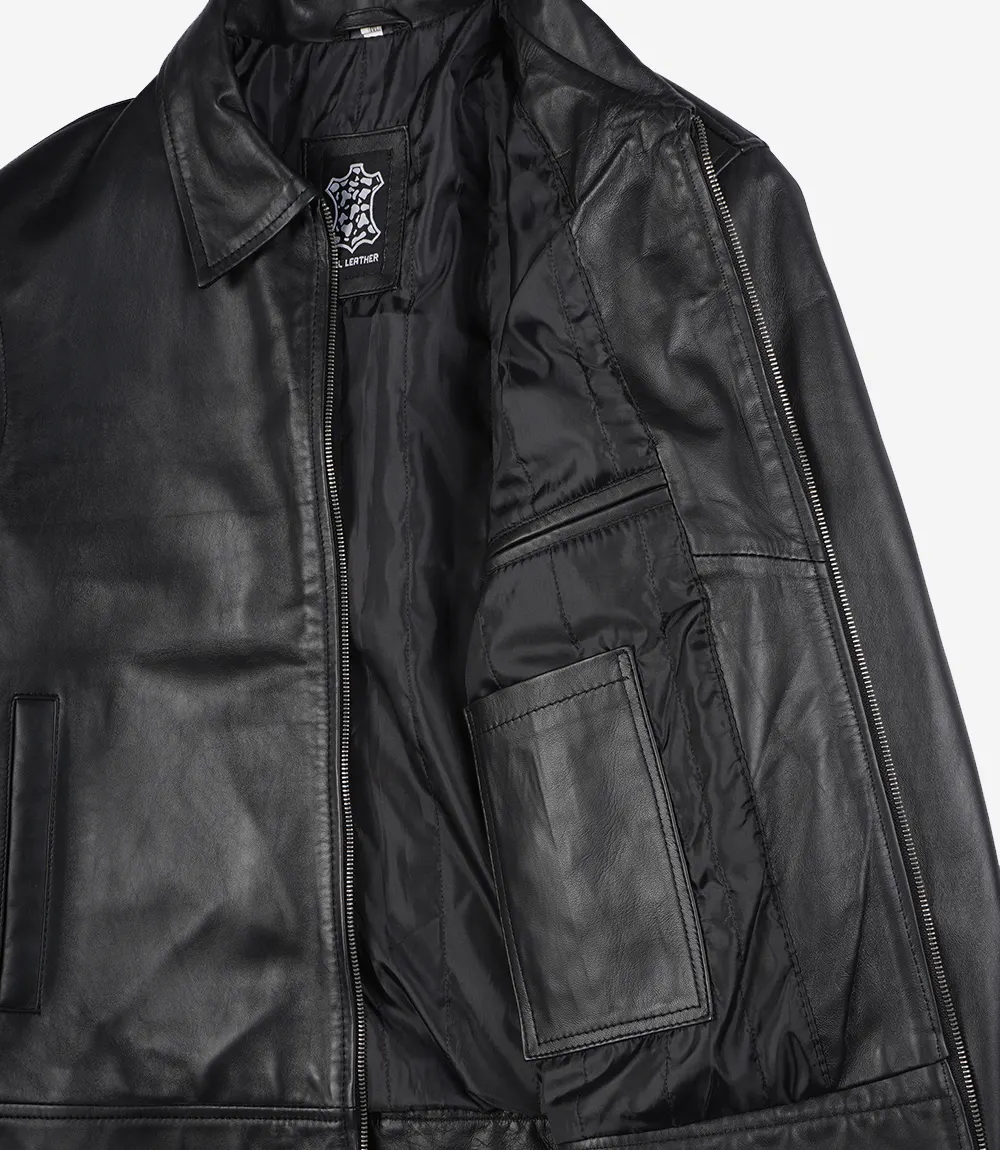 Mens Classic Harrington Black Real Leather Jacket