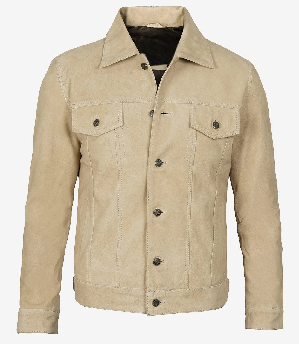 Men’s Classic Real Suede Camel Trucker Style Jacket