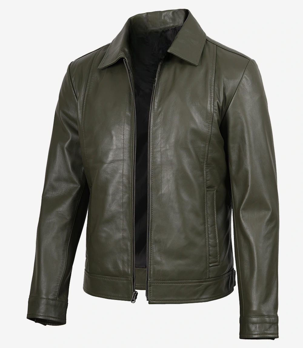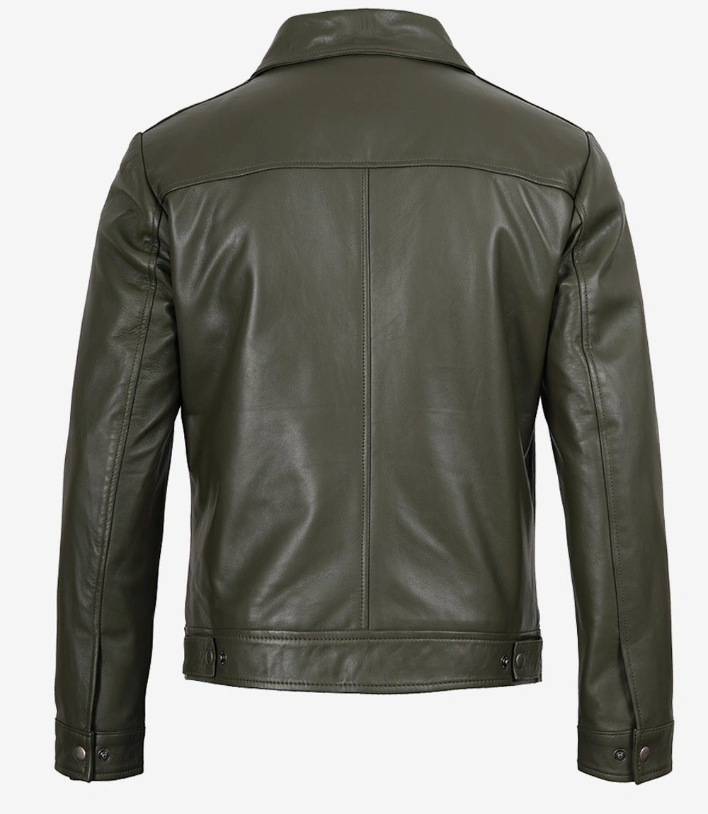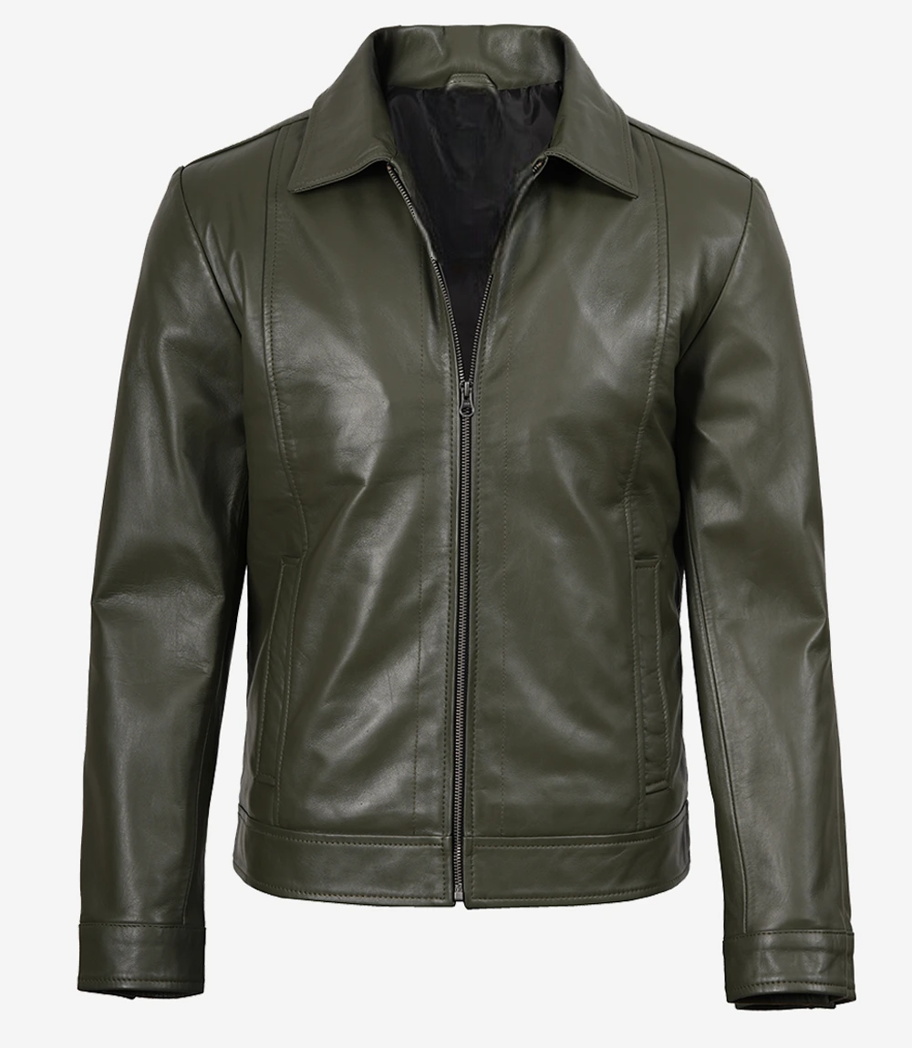 Men’s Classic Shirt Collar Olive Green Leather Jacket is 100% made from real leather and will not only last long but also give you the best and most comfortable wearing experience.