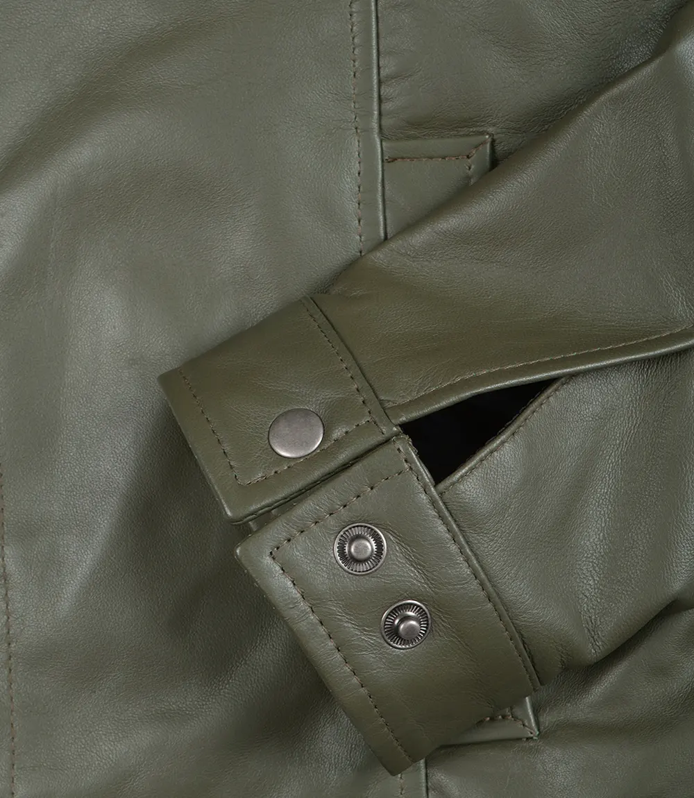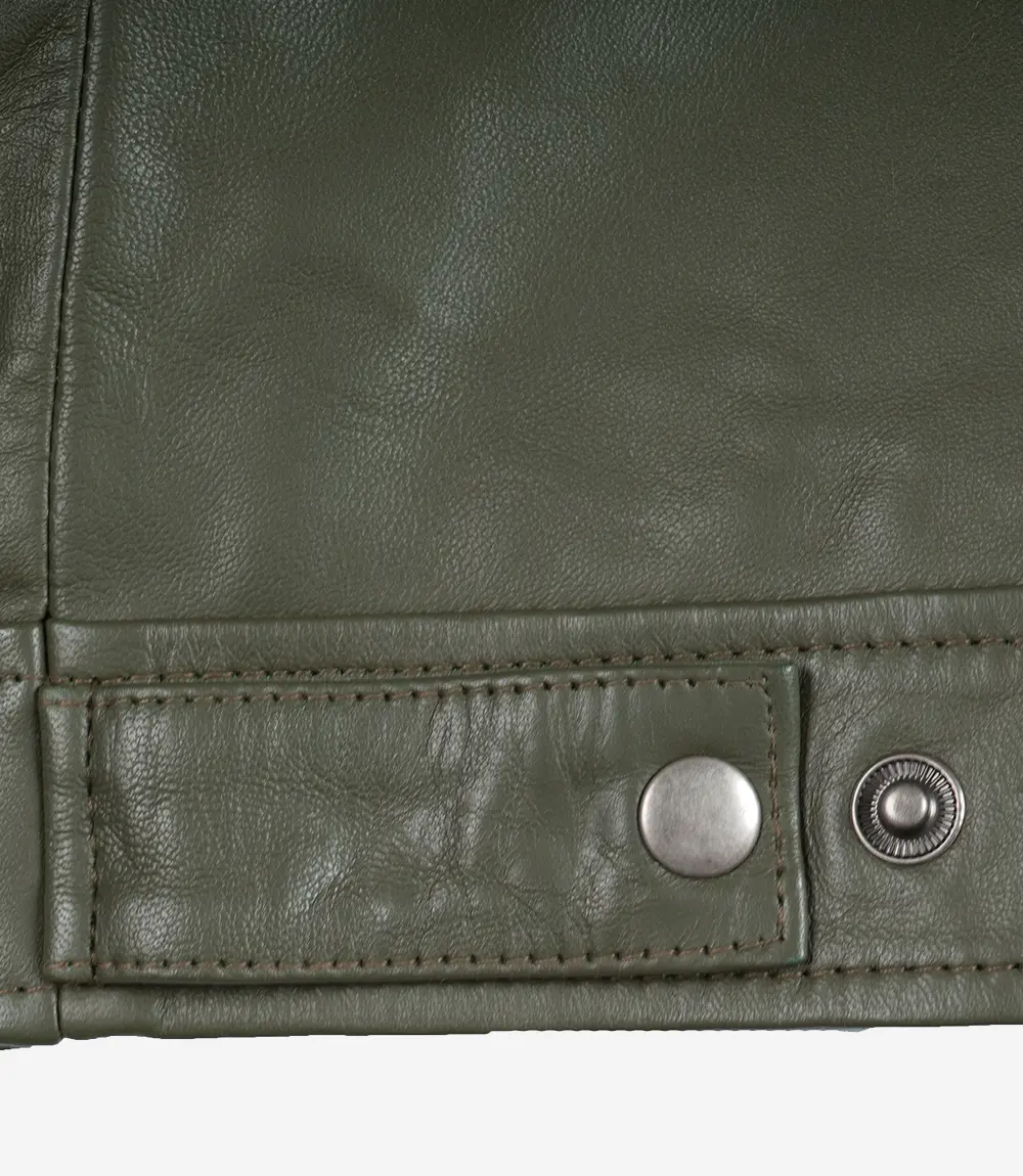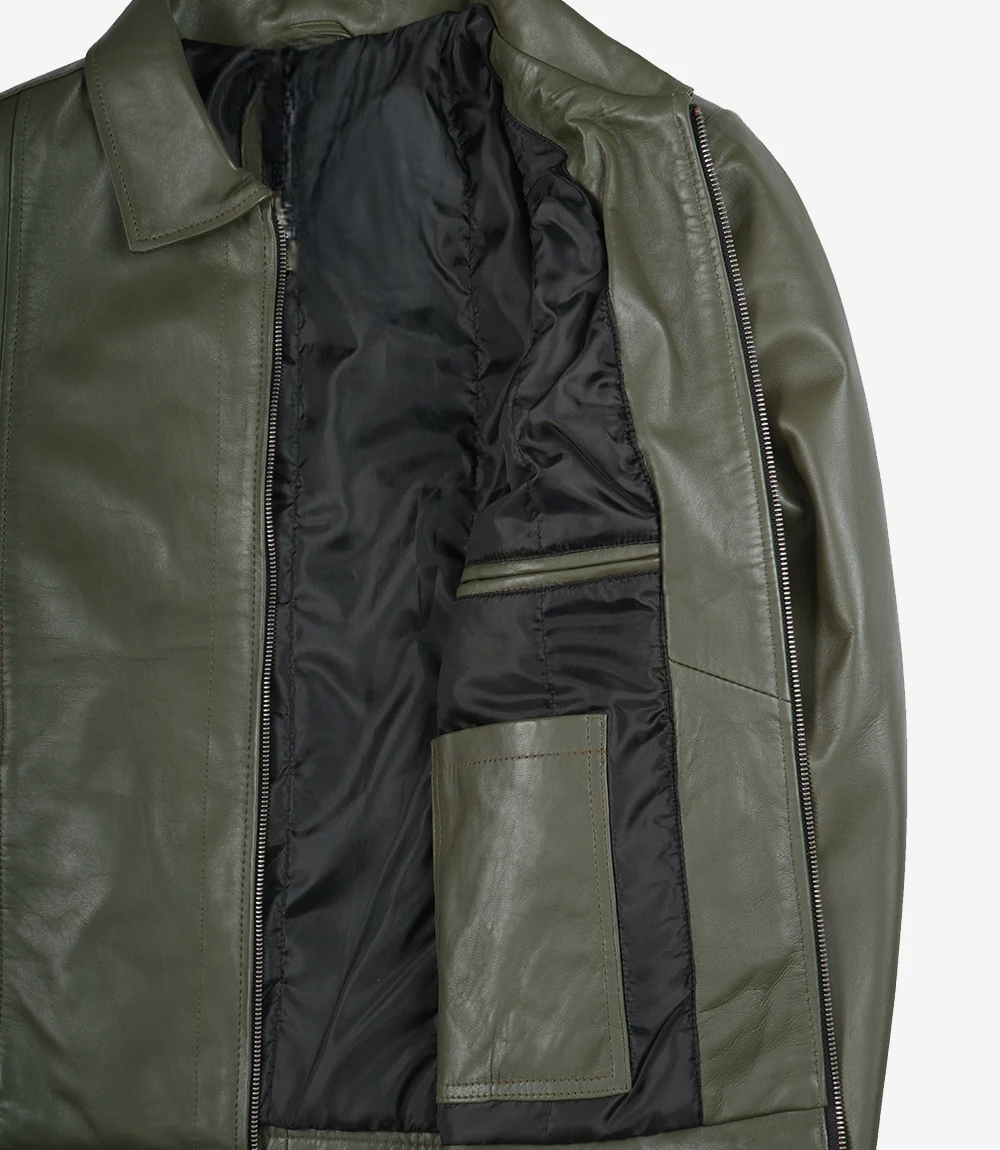 Men’s Classic Shirt Collar Olive Green Leather Jacket is 100% made from real leather and will not only last long but also give you the best and most comfortable wearing experience.