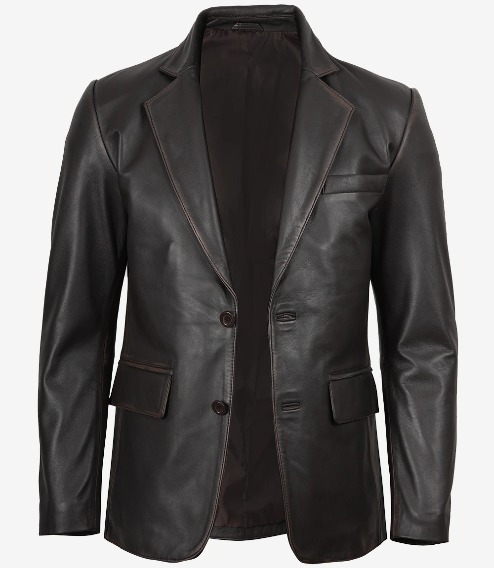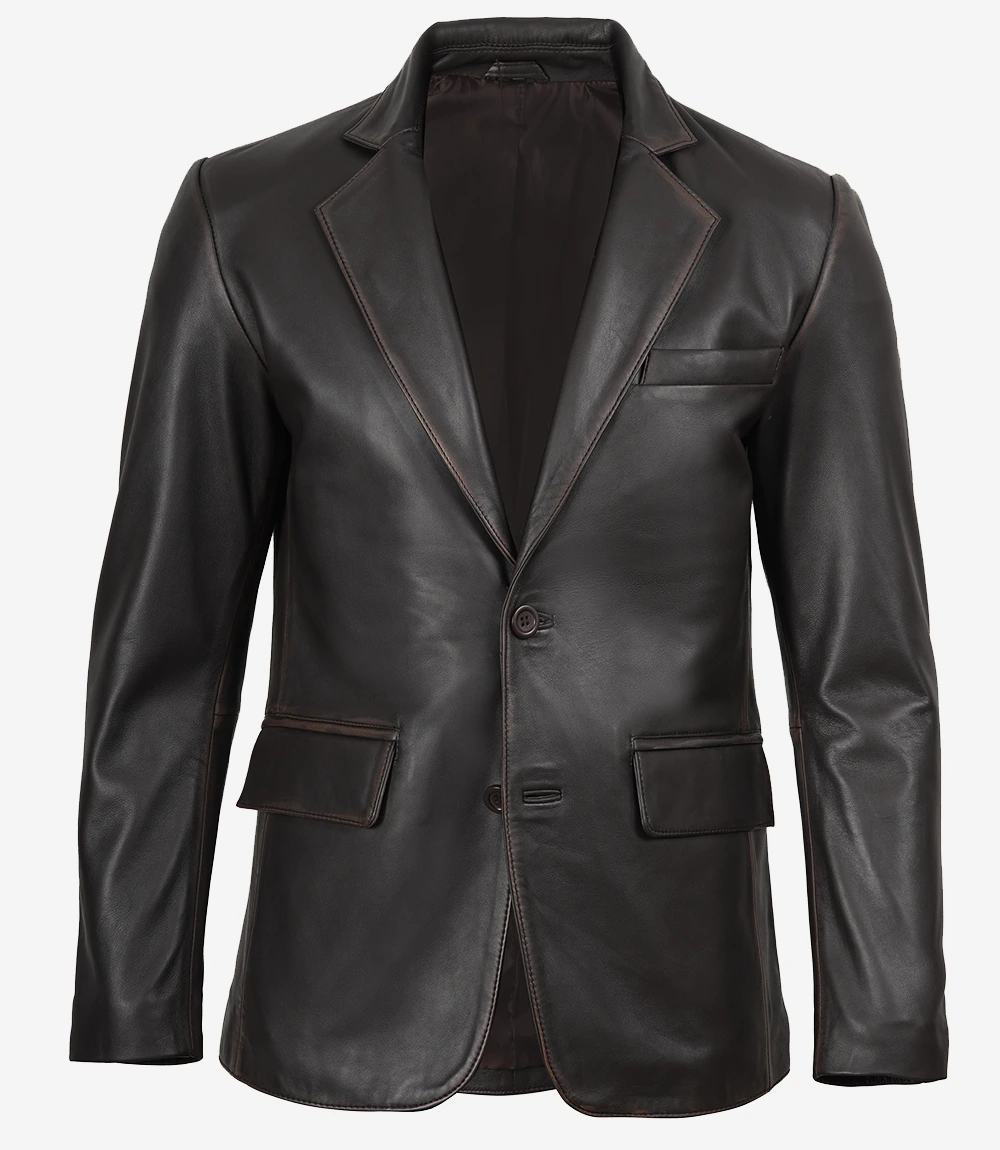 2 reviews for Men’s Dark Brown Rub Off Leather Blazer