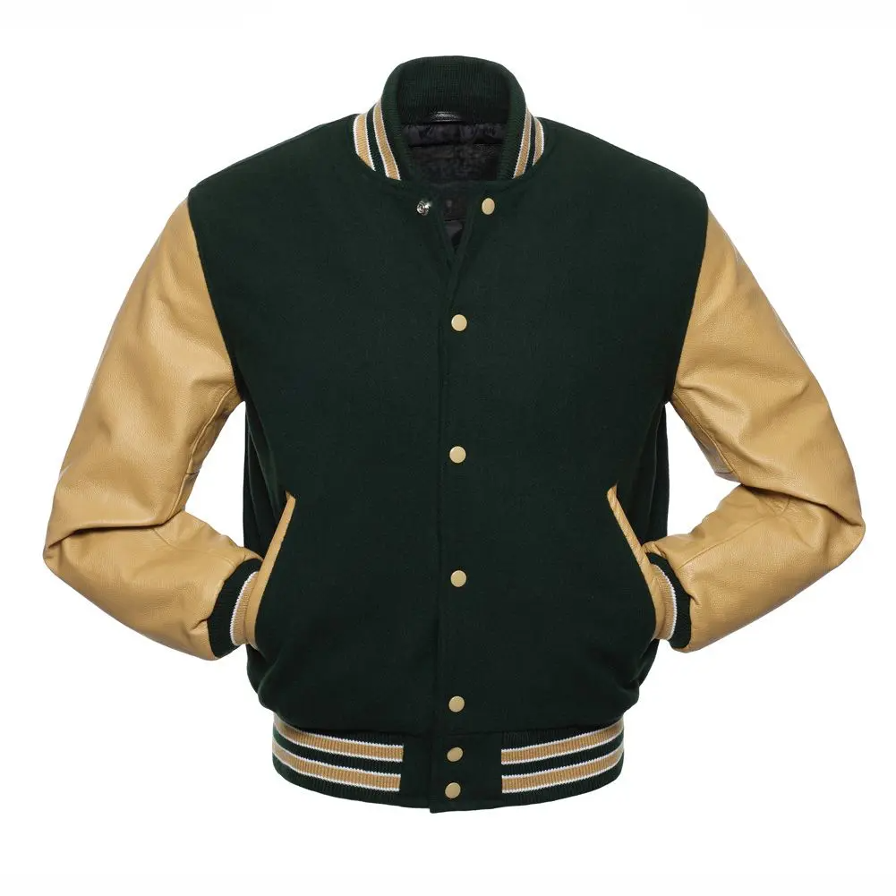 Mens Forest Wool Leather Sleeves Varsity Jacket