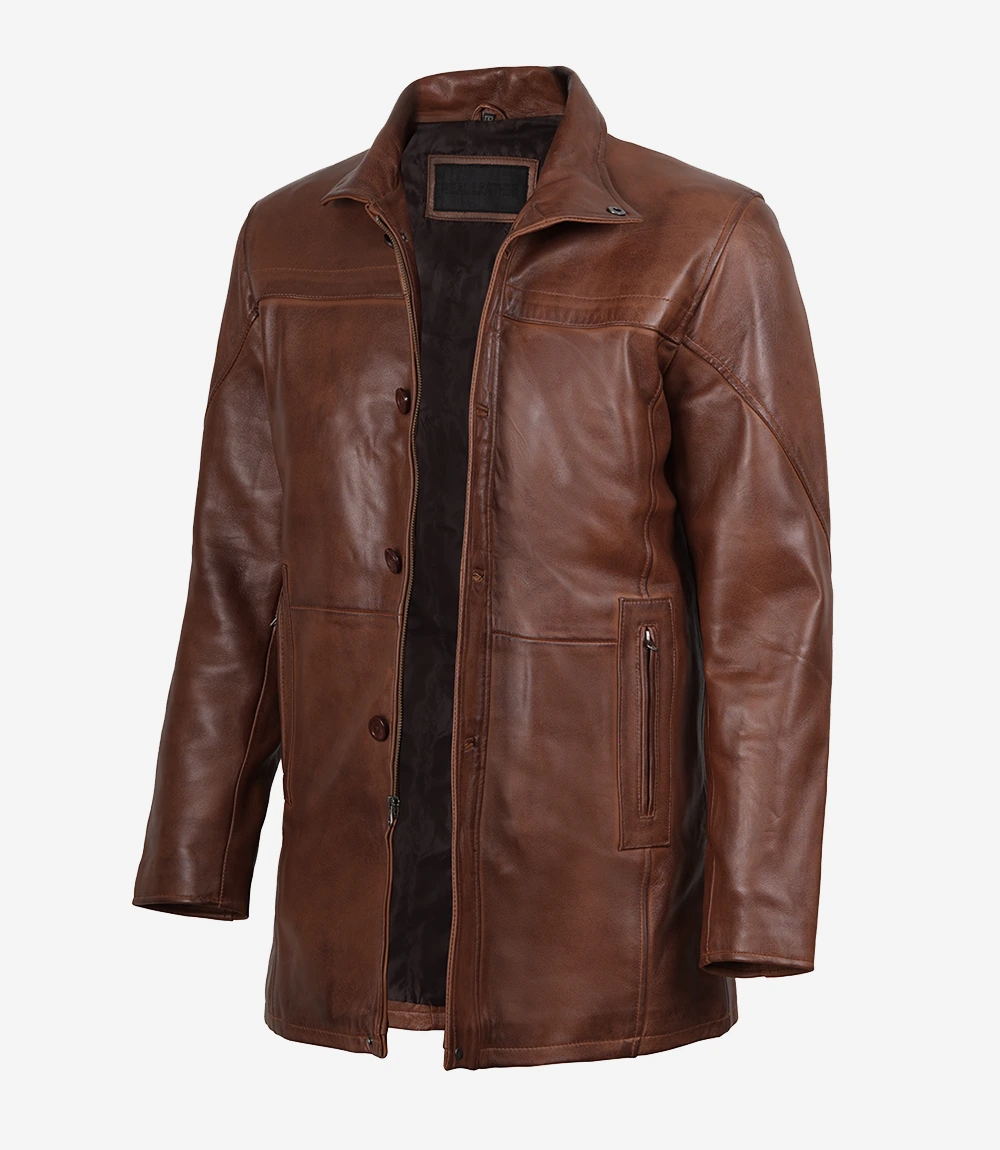 Mens Premium Brown Leather Car Coat