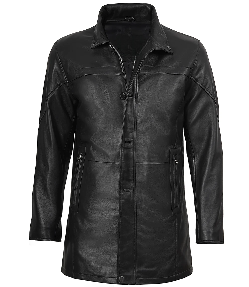 Men’s Bristol Real Lambskin Black Leather Car Coat