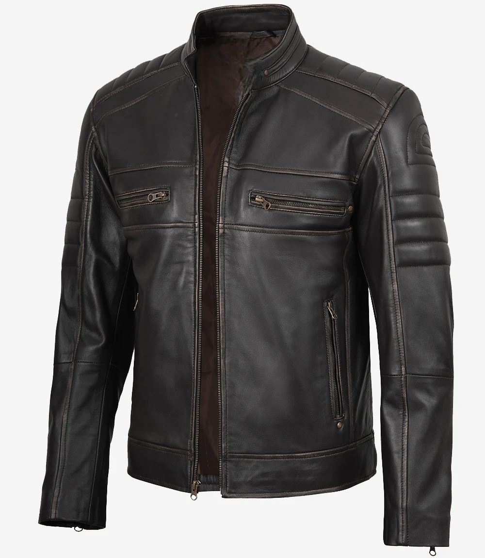 Mens Real Leather Distressed Brown Biker Style Jacket