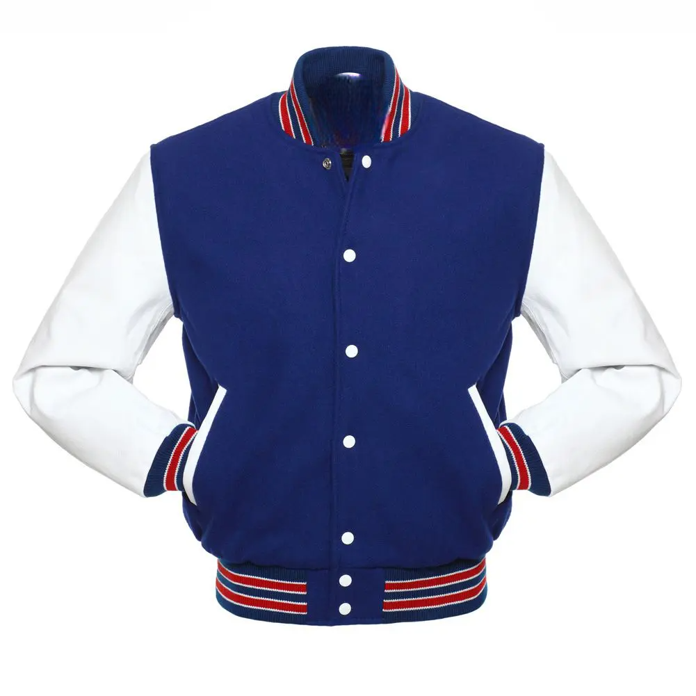 Royal Blue Wool White Leather Sleeves Varsity Jacket