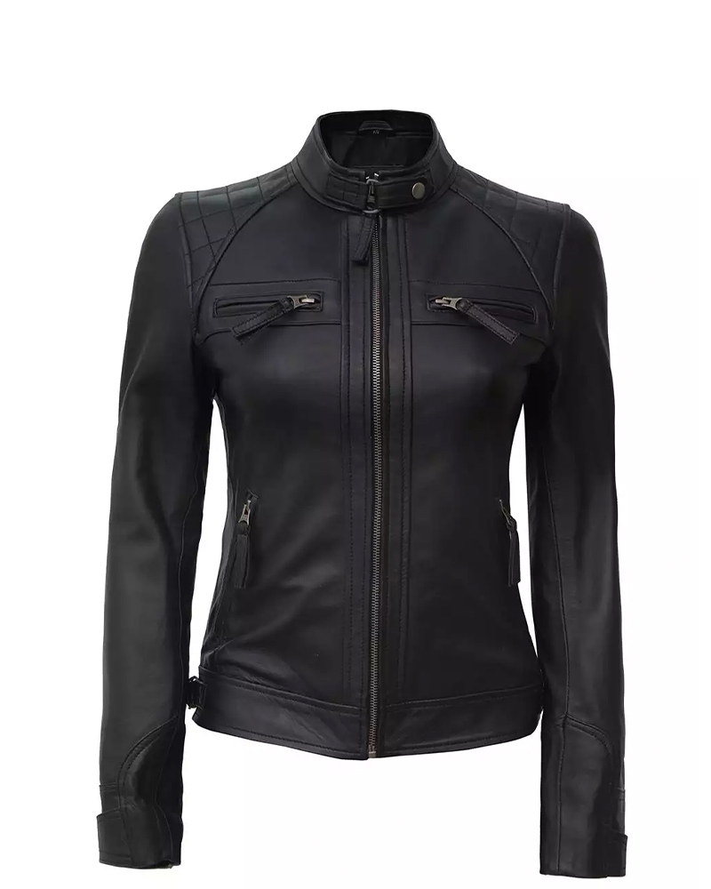 10 reviews for Women Black Quilted Cafe Racer Leather Jacket