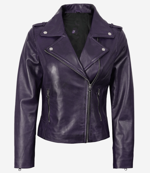 The Women’s Asymmetrical Lambskin Purple Biker Style Jacket is not only about fashion; it gives individuality and empowerment as well. The usage of the premium leather makes it very soft to the touch, but at the same time, it has very good durability and strength.