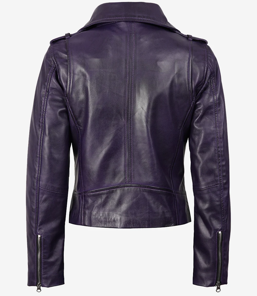 Women’s Asymmetrical Lambskin Purple Biker Style Jacket