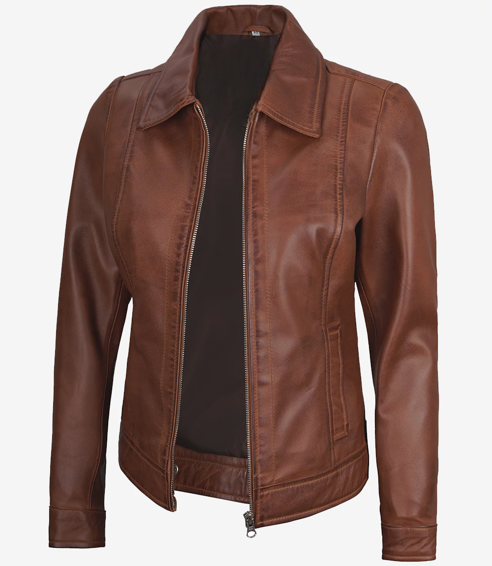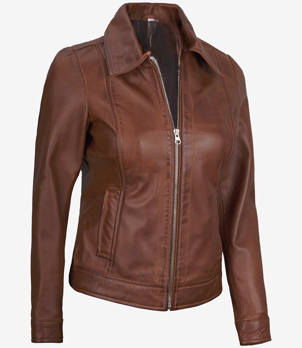 Women will find that The Real Leather offers the Harrington Lightweight Brown Leather Jacket, and this super stylish piece is the epitome of comfort with attitude. Whether you want to bring that polished edge to your regular outfit or just want to give off the right confident look for a night out on the town, this jacket is definitely a must-have.