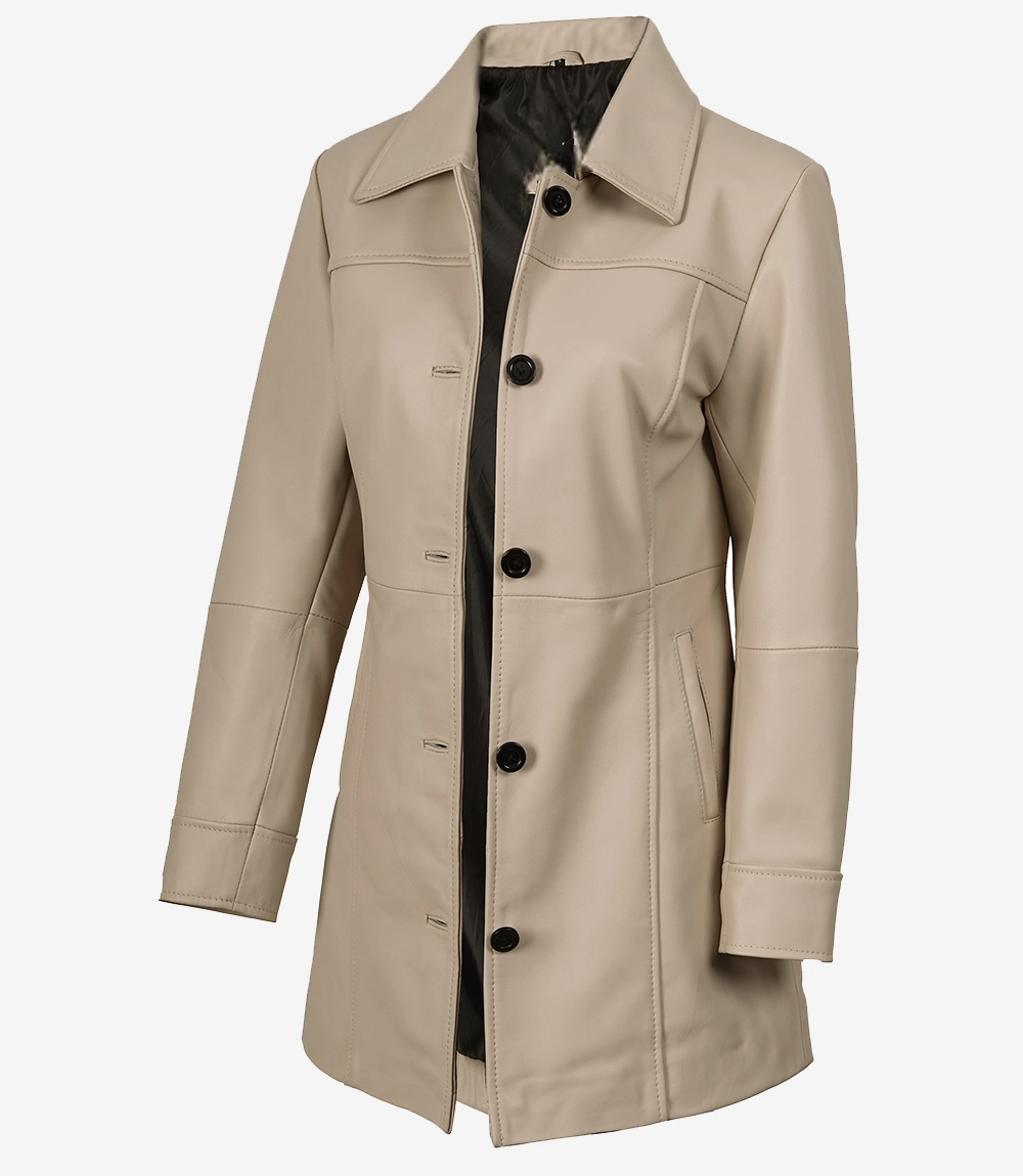 Women’s Real Lambskin Leather 3/4 Length Beige Coat