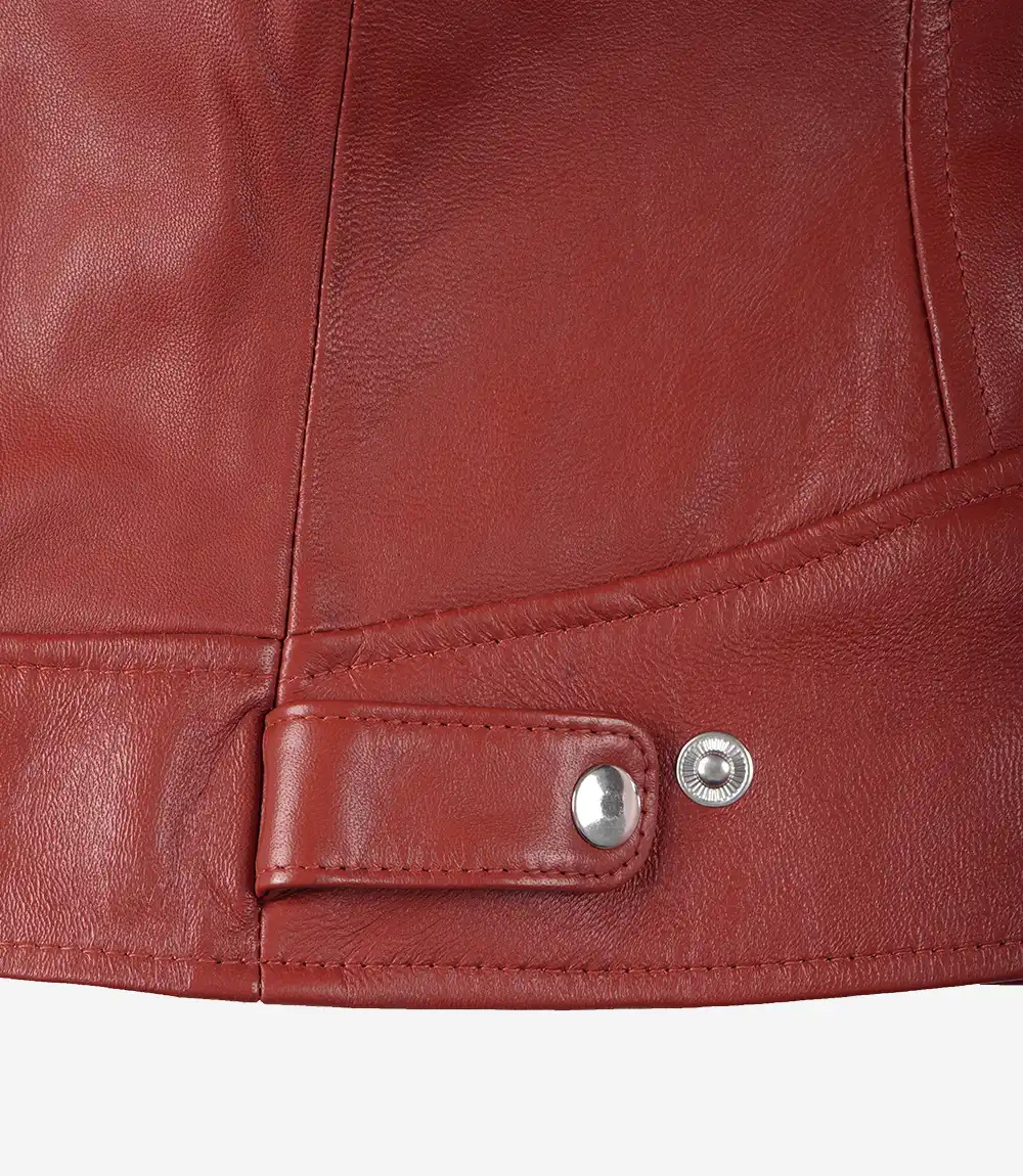 Womens Real Leather Red Biker Style Jacket