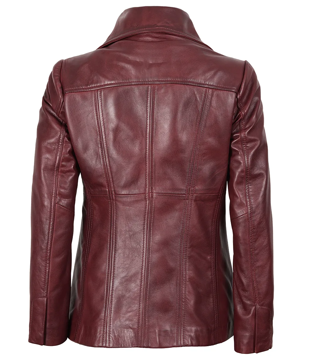 Be the first to review “Womens Three Button Burgundy Leather Blazer”