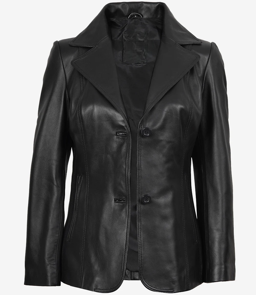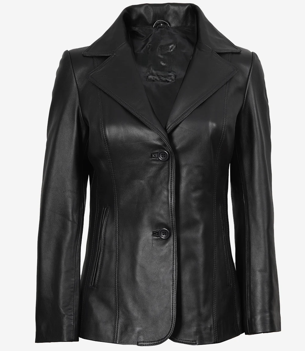 Main Characteristics of the Women’s Two-Button Black Premium Leather Blazer